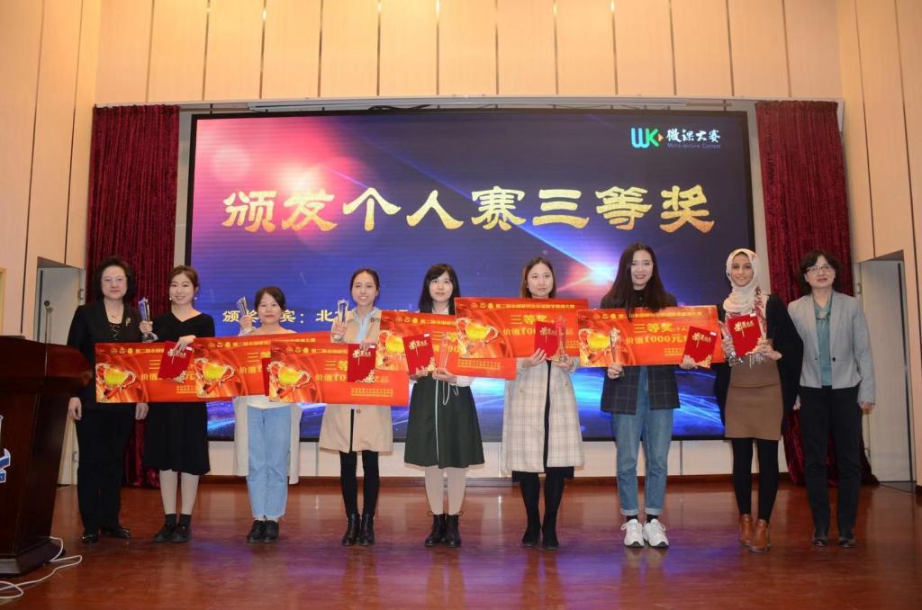 在颁奖典礼上张晓慧院长作为最佳组织奖获奖院校代表发言,充分肯定了汉语教学微课大赛在促进汉语线上和线下教学的应用普及、提高未来国际汉语师资信息技术应用能力,以及信息化时代汉语国际教育复合型人才培养等方面的积极意义,指出要充分利用“微课”这一新型教学形式便捷性和高效性,与互联网时代汉语国际教育、中国文化走出去的发展趋向相适应,在探索“互联网+汉语国际教育”的创新师资培养模式过程中展现出了自己独特的优势,最后表示我校将不忘初心、砥砺前行,与其他高校共同努力,迎接互联网时代汉语国际教育的美好未来。