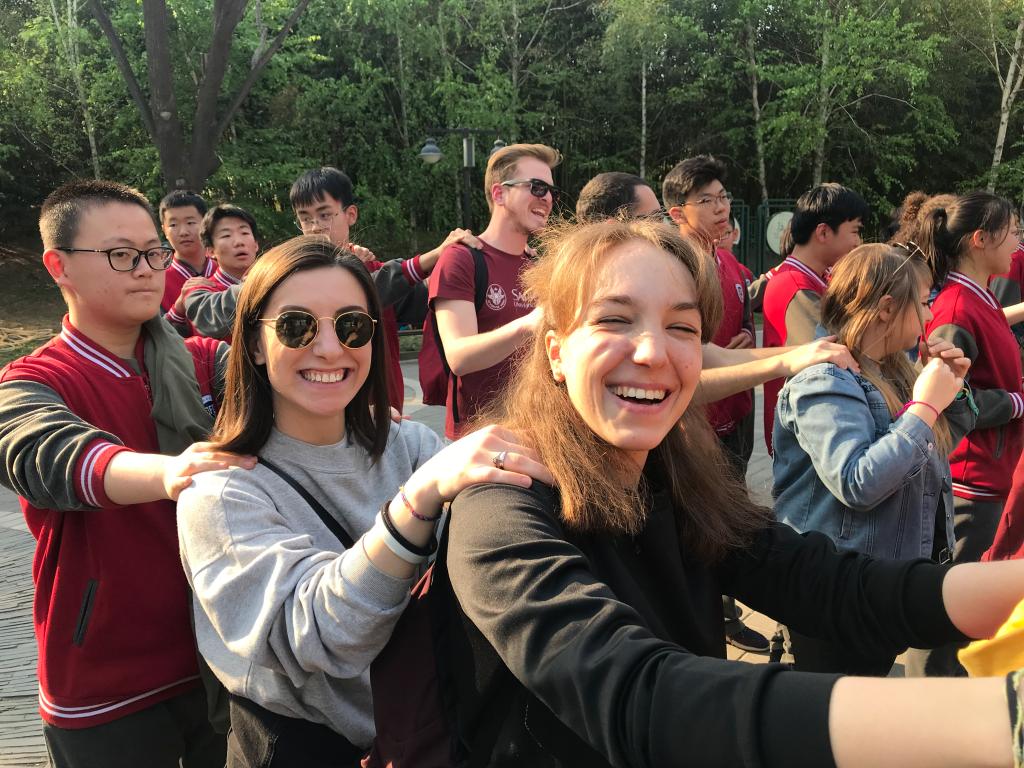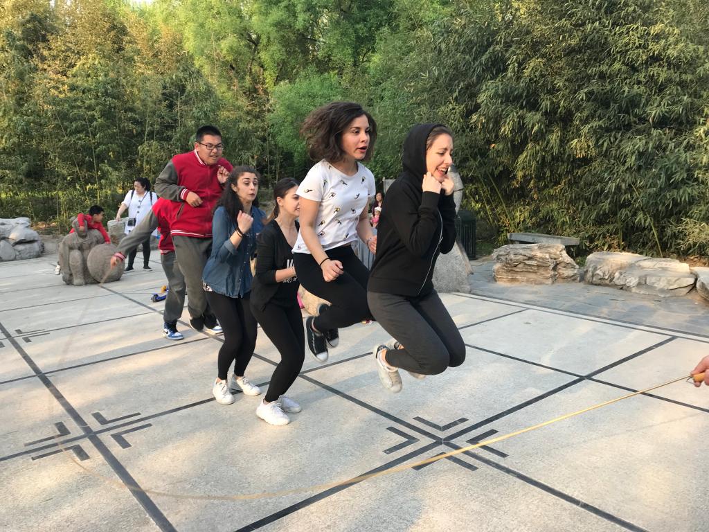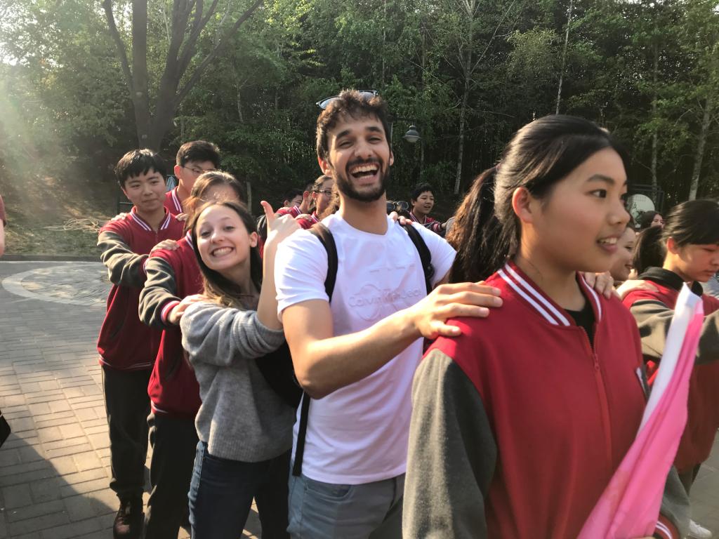 2019年4月15日星期一下午,北京外国语大学中文学院对外汉语系2018级意大利罗马班的全体留学生与北外附中初三、高一年级学生共同参加了在紫竹院公园举办的“青春飞扬,舞动春日” “1+3”年级趣味运动会。