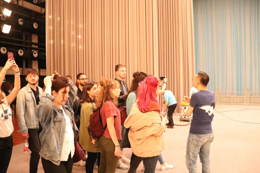 5月19日在北京外国语大学中文学院对外汉语系就读的22名意大利罗马大学留学生在夏菁老师的带领下来到人民剧场,观看了中国国家京剧院名家京剧《红桃山》的录制。