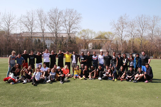 赛后,双方球员相互致意,并且热情交流了比赛情况。国际执法联络员项目鲁文霞老师为两支球队颁发了冠亚军的奖品,全体球员和啦啦队一起合影留念。