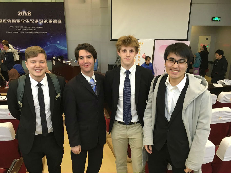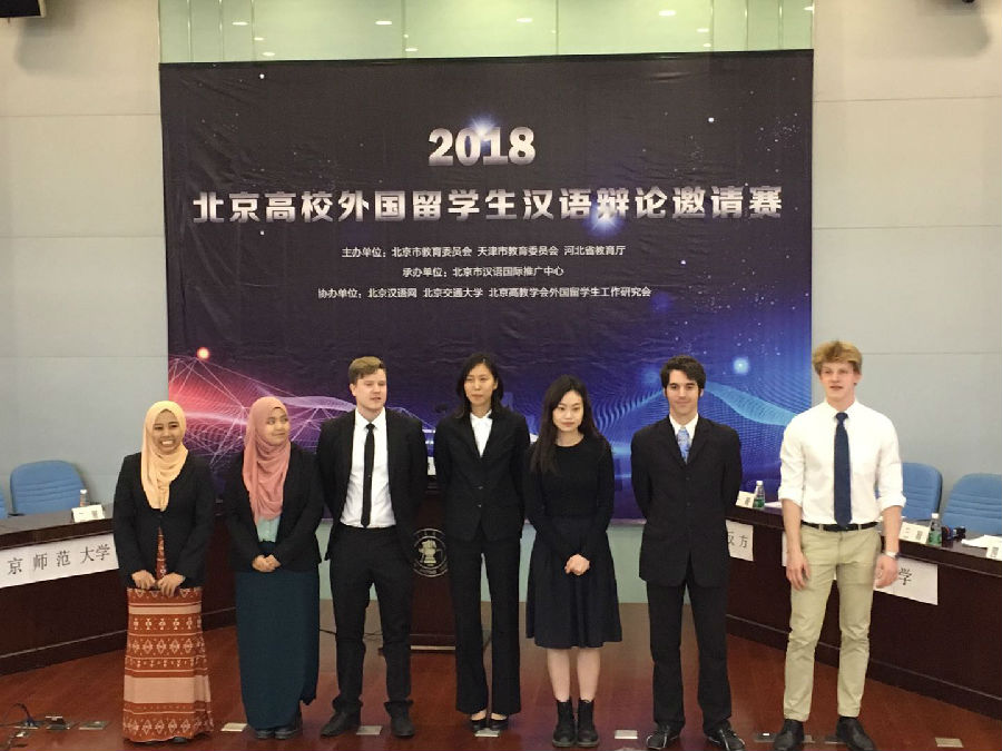2018年4月15日上午,北京外国语大学留学生辩论队参加了在北京交通大学举行的2018北京高校留学生辩论大赛初赛。经过一个半小时的激烈鏖战,北外战胜北京师范大学,顺利晋级,将于下个月与北京中医药大学进行复赛的角逐。北京高校留学生辩论赛每两年举行一次,参赛队伍主要由北京市开展留学生教育的18所著名高校组成,其中包括北京语言文化大学、北京师范大学、对外经济贸易大学等高校。北外在前两届竞赛中,分别取得第三名、第二名的成绩。
