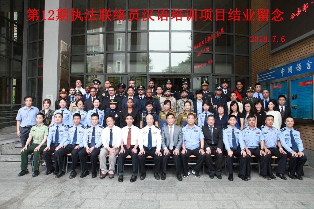 2018年7月6日下午,第12期国际执法联络员汉语培训项目结业典礼在中文学院文华厅举行。公安部国际合作局副局长谭钧、北京外国语大学副校长闫国华出席结业典礼。有关部门负责人以及本期项目的各位师生参加典礼活动,典礼由中文学院项目部主任岳岚主持。