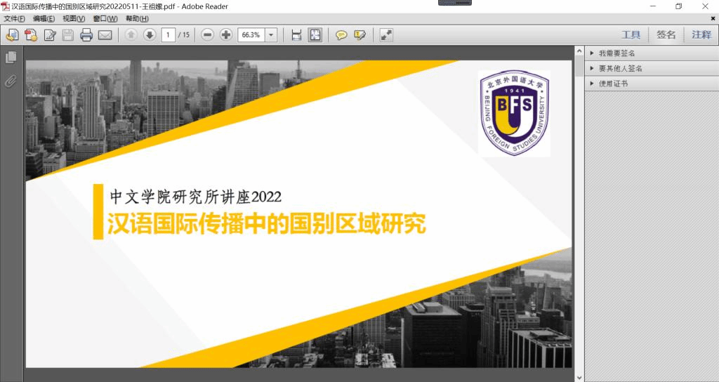 为进一步提升我院教师和研究生的科研素养,凝练富有特色的研究课题,构建良好的学术氛围,5月11日下午,国际中文教育研究所和语言学与应用语言学研究所联合举办“2022年春季学期学术沙龙”活动。国际中文教育研究所王祖嫘副教授为两所师生作题为“汉语国际传播中的国别区域研究” 的学术讲座。讲座由语言学与应用语言学研究所戴曼纯教授主持,两所四十余名师生参加了此次讲座。王老师从“国别区域研究的概念界定”“国别区域研究中的主要问题”“国别区域研究的主要方法”和“国别区域研究的写作范式”几个方面进行了介绍。