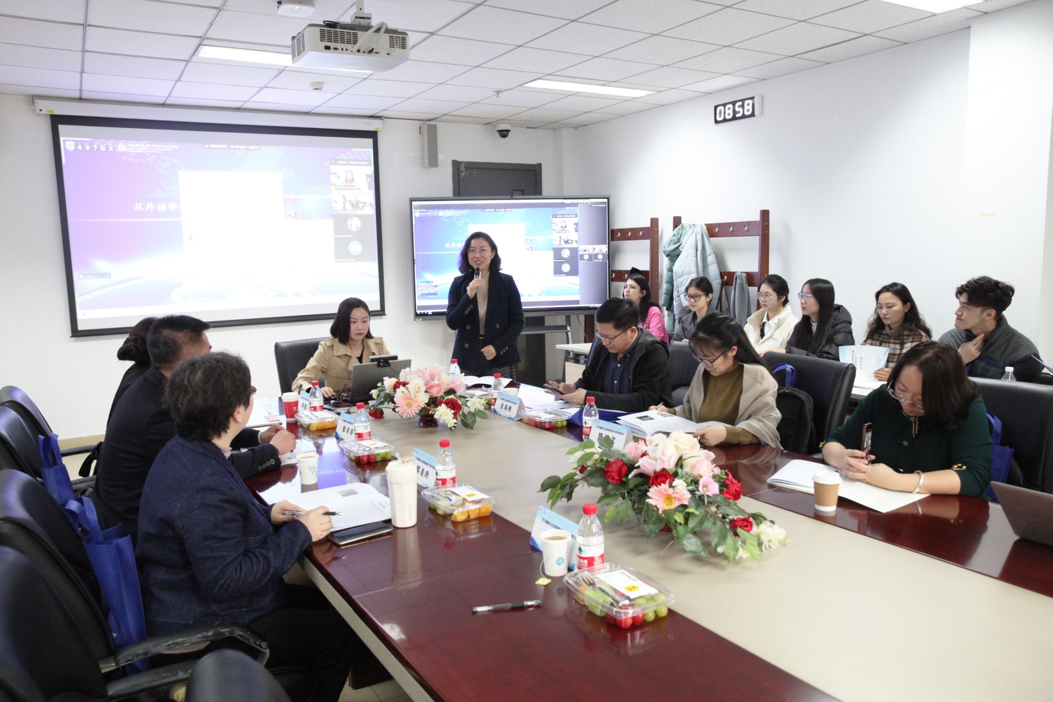 2024年11月23日,中文国际化与全球语言治理青年学者论坛在北京外国语大学太阳成集团tyc7111cc204会议室举行。本次会议由北京外国语大学太阳成集团tyc7111cc主办,中文学院王祖嫘副教授召集,来自中国、美国、新西兰等国的6位专家学者通过线上线下相结合的方式,就国际中文教育的理论创新与实践探索展开深入研讨。北京师范大学、中央民族大学、北京语言大学以及新疆师范大学、包头师范学院等十余所京内外高校的50余名国际中文教育相关专业教师和硕博研究生线下参与本论坛,来自美国佛罗里达州立大学、英国诺丁汉大学、西班牙巴塞罗那孔子学院等院校和单位的40余名相关人士线上参与了论坛。