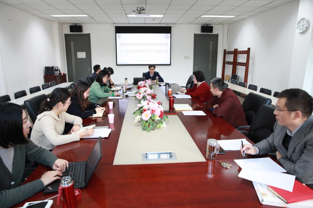11月30日下午,中文学院召开专题学习研讨会,理论学习中心组围绕习近平总书记“把思想政治教育贯穿教育教学全过程”重要论述开展学习讨论。党总支书记刘厚广做主题发言,党政联席会成员张晓慧、高育花、朱勇、方稚松、罗静、冉利华和张学增、李美玲、刘璐、赵映雪参加学习活动。