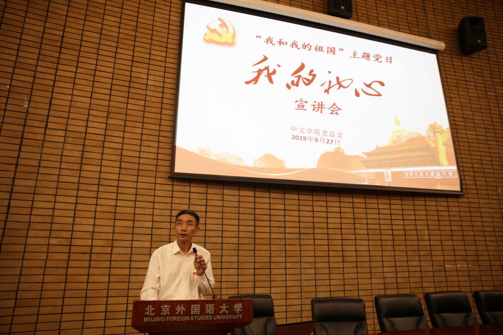9月27日下午,中文学院举办“我和我的祖国”主题党日活动。范梦迪、徐平、孙琳、王珺琪、田汶鑫、罗静、白雪等七名党员深情演说“我的初心”,启发党员师生“不忘初心,牢记使命”,激励同学们发奋成才,号召全体教师践行立德树人根本任务。