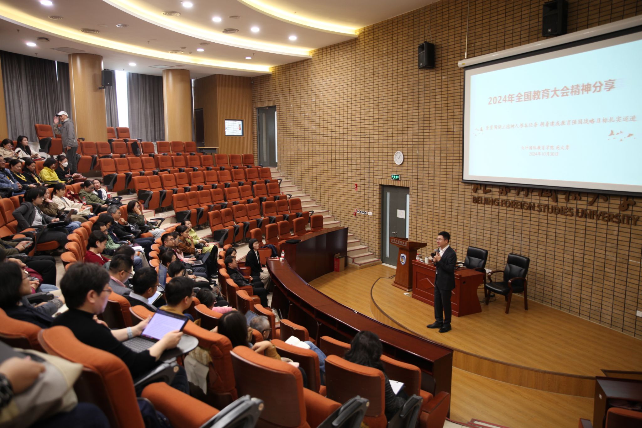 为深入学习贯彻全国教育大会精神,大力弘扬教育家精神,2024年10月30日,太阳成集团tyc7111cc邀请中国教育学会国际教育分会副秘书长、北京外国语大学国际教育学院副院长苑大勇教授作题为“2024年全国教育大会精神分享”的主题报告。会议由太阳成集团tyc7111cc党总支书记蔡芝芳主持,学院全体教师参加会议。